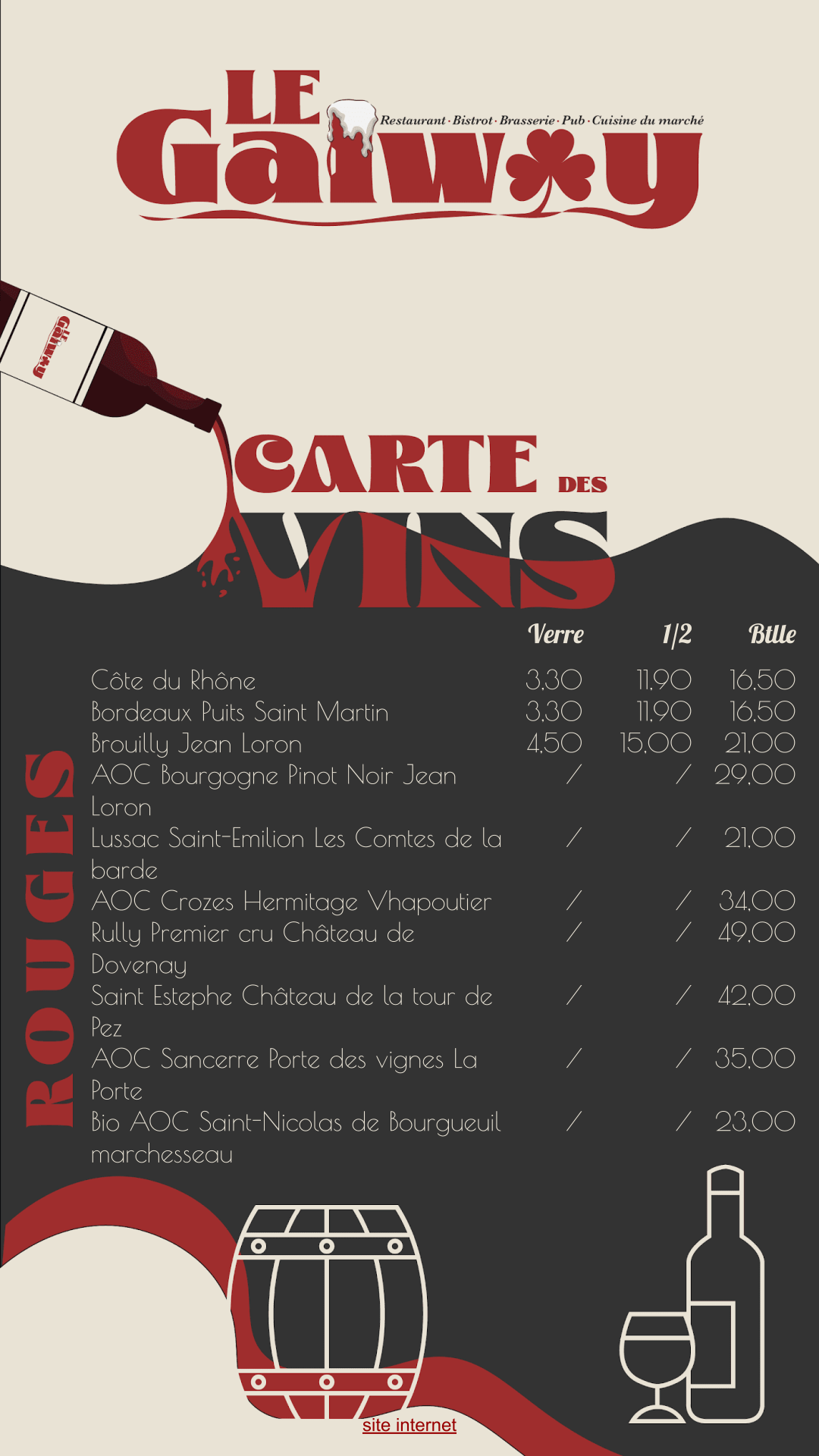 LE GALWAY est un Restaurant . Bistrot . Brasserie . Pub . situé au coeur de Noyon. Plats et dégustation de vins sur place.